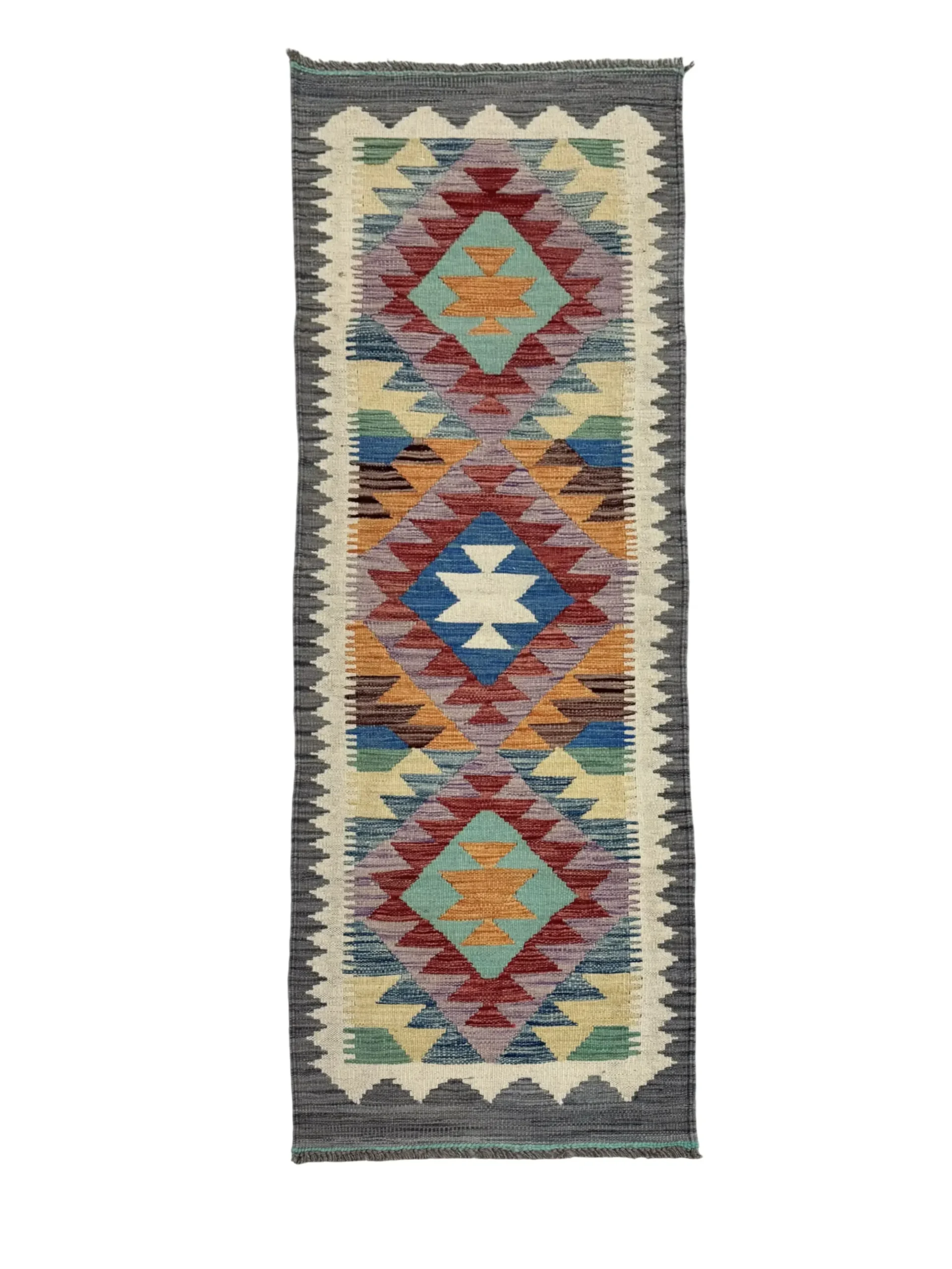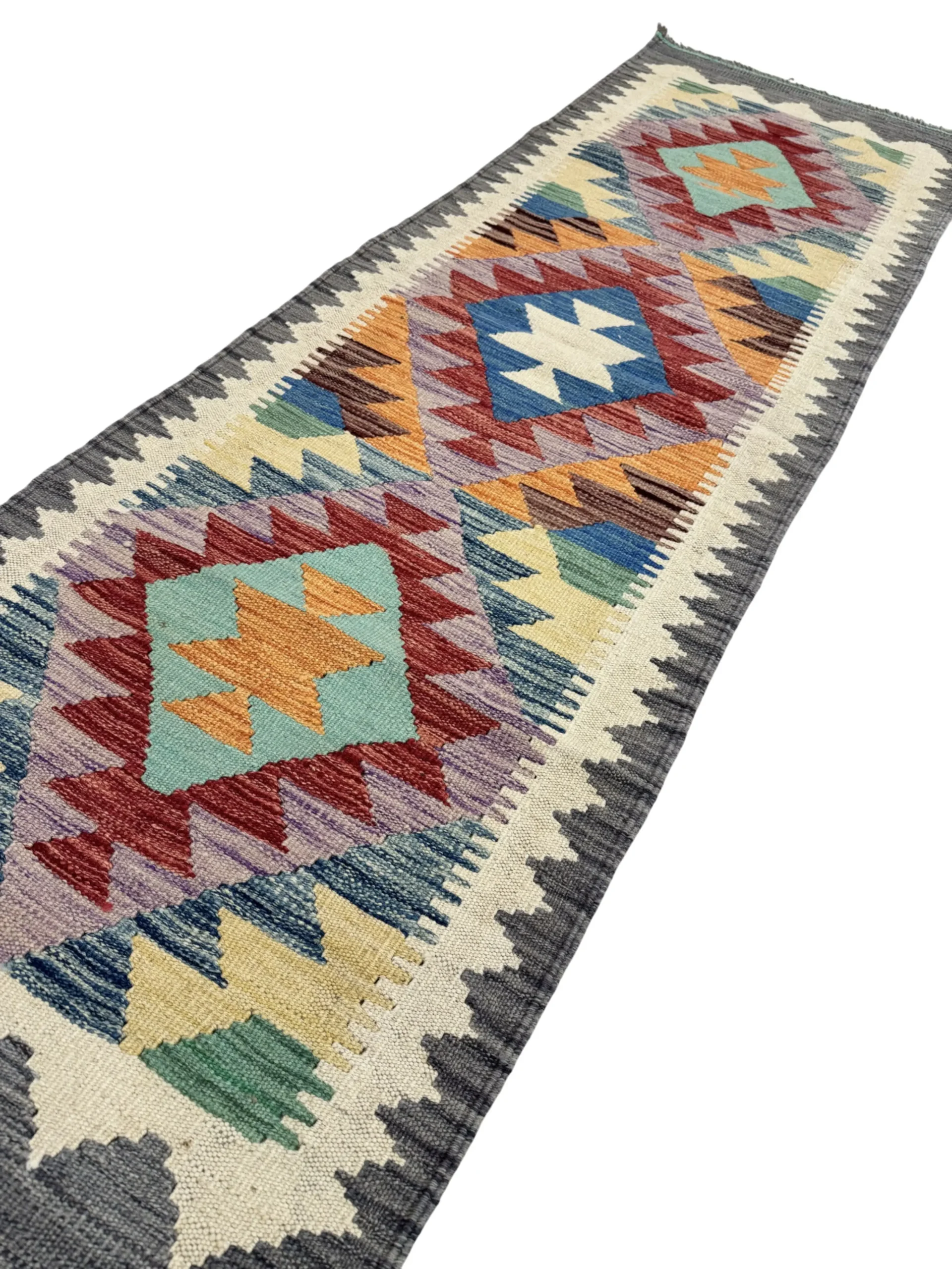 Aggiungi un tocco di stile e personalità ai tuoi ambienti con questa passatoia geometrica 198×62 cm, un tappeto moderno pensato per valorizzare corridoi, ingressi e zone di passaggio. Il suo design unico combina un motivo geometrico intricato, caratterizzato da losanghe e forme triangolari decorate con colori vivaci come rosso, arancione, turchese, giallo, blu e viola. Questo mix equilibrato crea un effetto visivo elegante e contemporaneo, perfetto per completare sia arredamenti moderni che ambienti più classici.