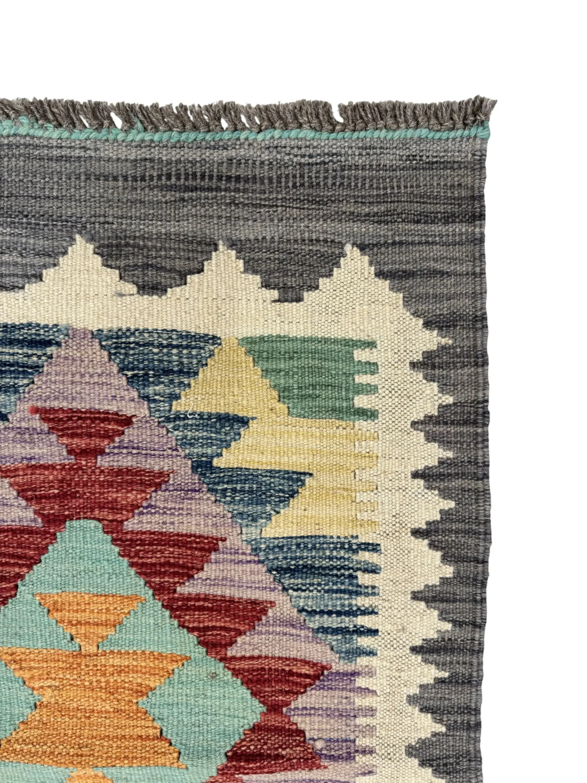 Il bordo grigio scuro con motivo a zig-zag bianco aggiunge profondità e definizione, mentre la parte centrale in tonalità crema illumina lo spazio e dona un’atmosfera accogliente. La qualità dell’intreccio mette in risalto la trama del tessuto, rendendo questa passatoia non solo bella da vedere ma anche resistente e facile da mantenere.