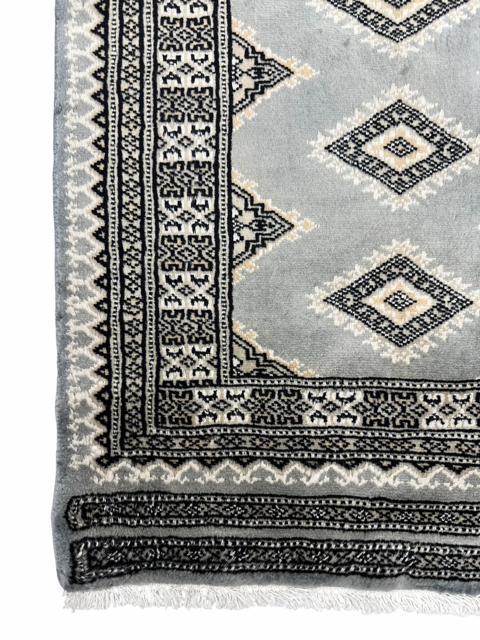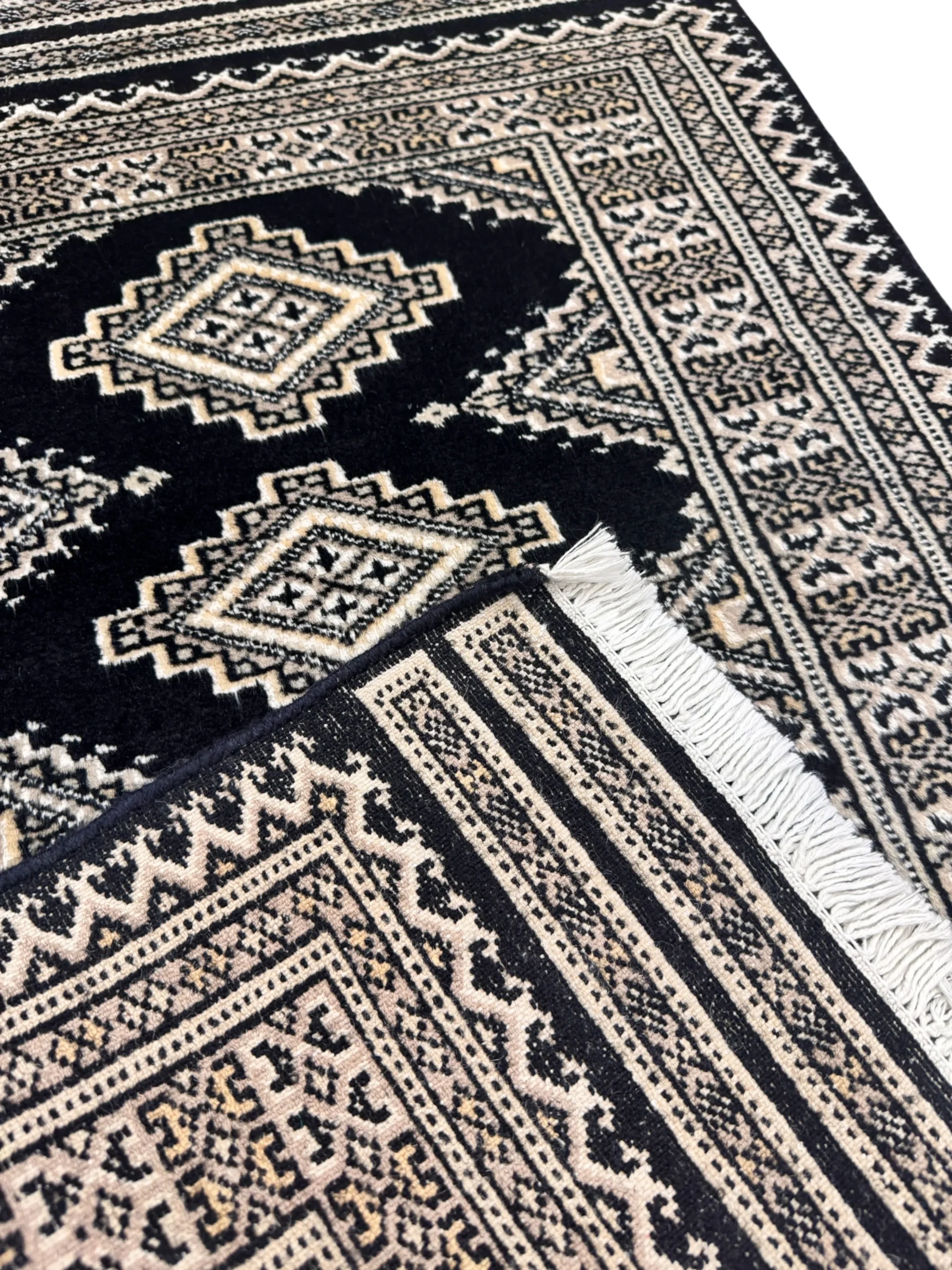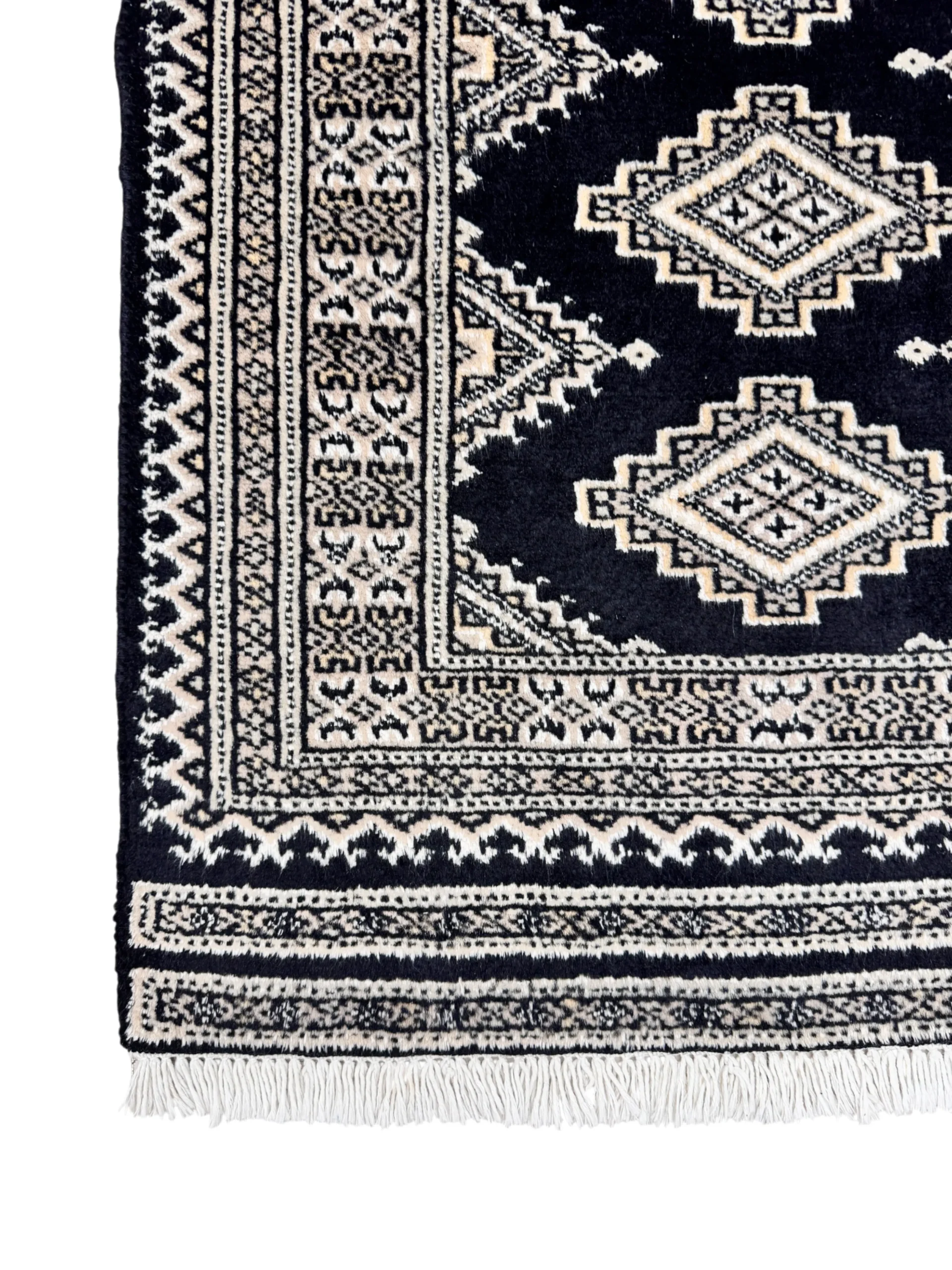 Tappeto Bukhara 95×64 cm Annodato a Mano – Tappeto Orientale Nero e Avorio