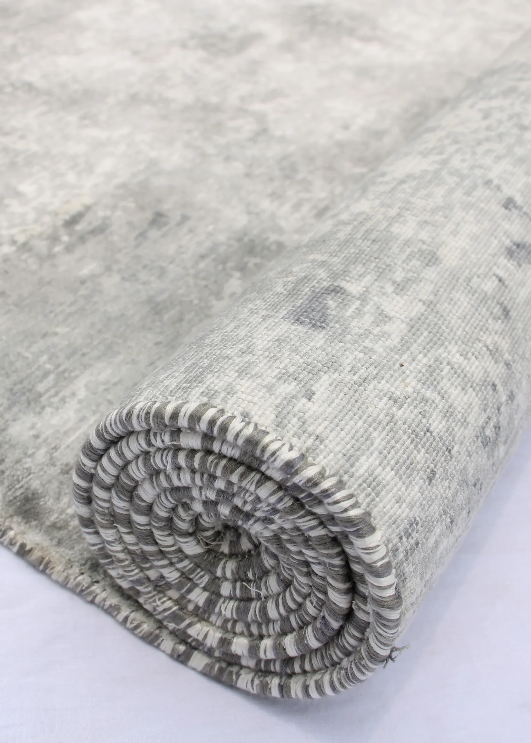 Elegante Tappeto Design Tencel lavorato a mano, caratterizzato da un raffinato design astratto in grigio e bianco. La texture sfumata crea un effetto moderno e minimalista, ideale per soggiorno, camera da letto e spazi contemporanei. Morbido, luminoso e resistente, aggiunge stile e carattere all’ambiente con una qualità artigianale di livello superiore.