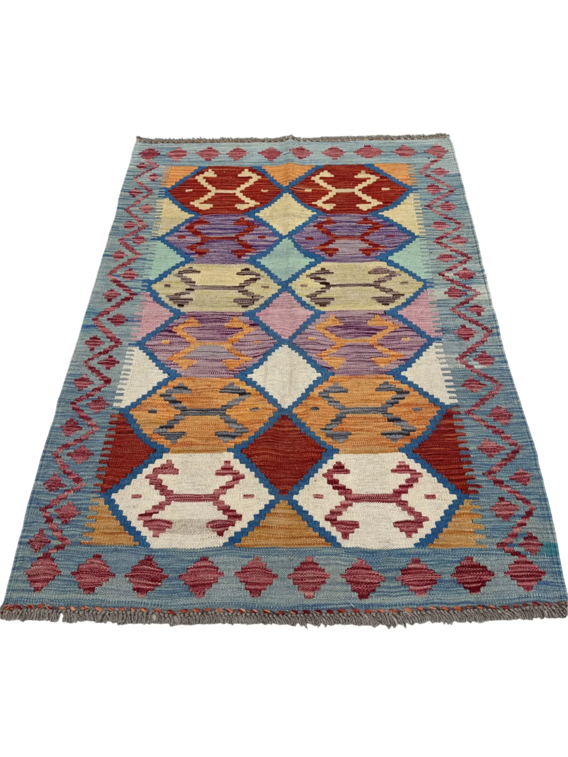Tappeto Kilim Rettangolare 146×102 cm in Lana – Motivo Geometrico Colorato
