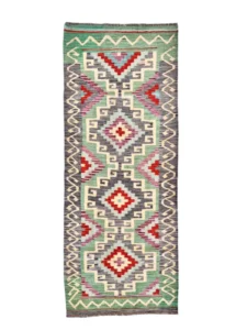Tappeto Passatoia Geometrico 188×64 cm in Lana – Fatto a Mano con Motivo a Rombi Multicolore