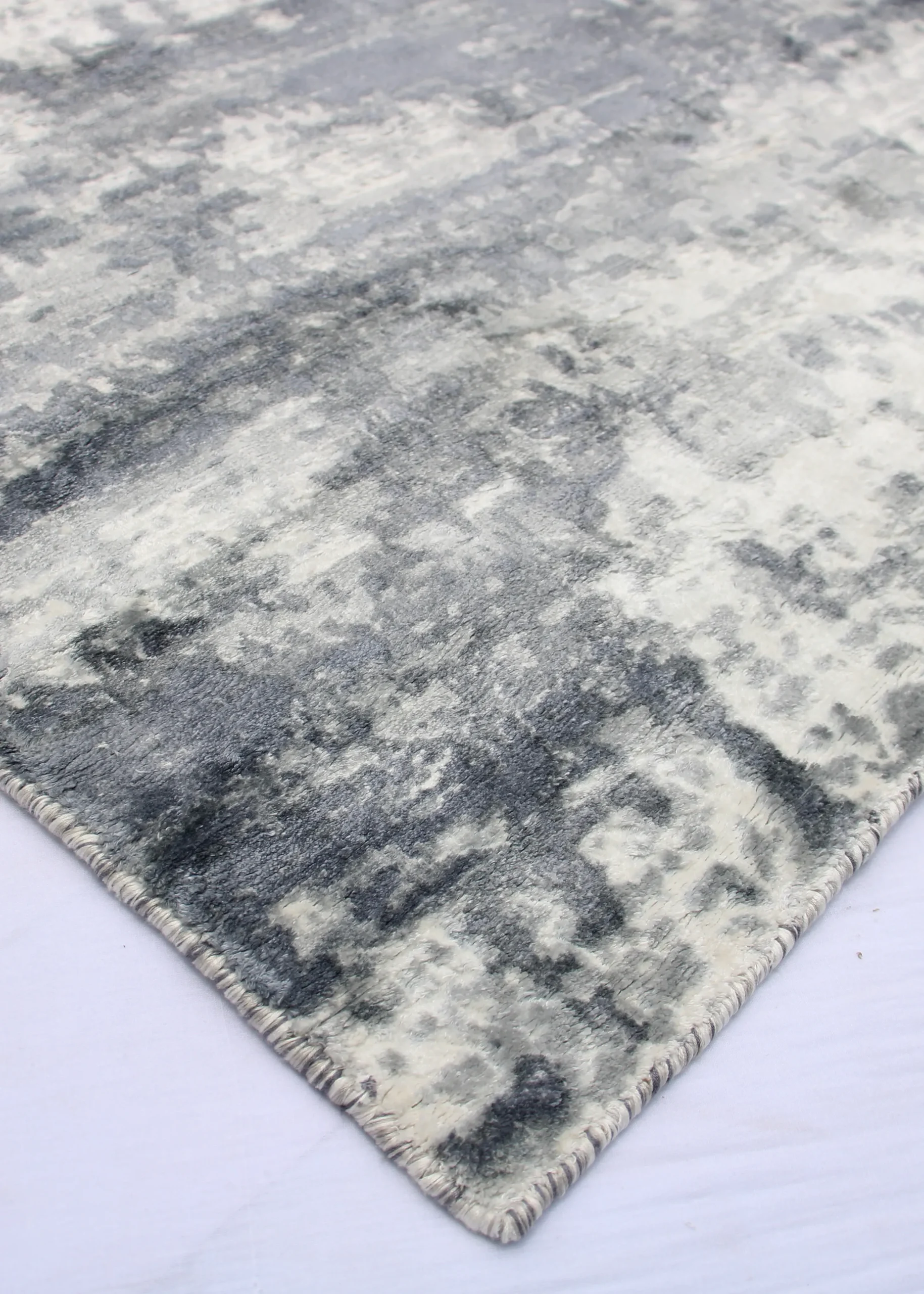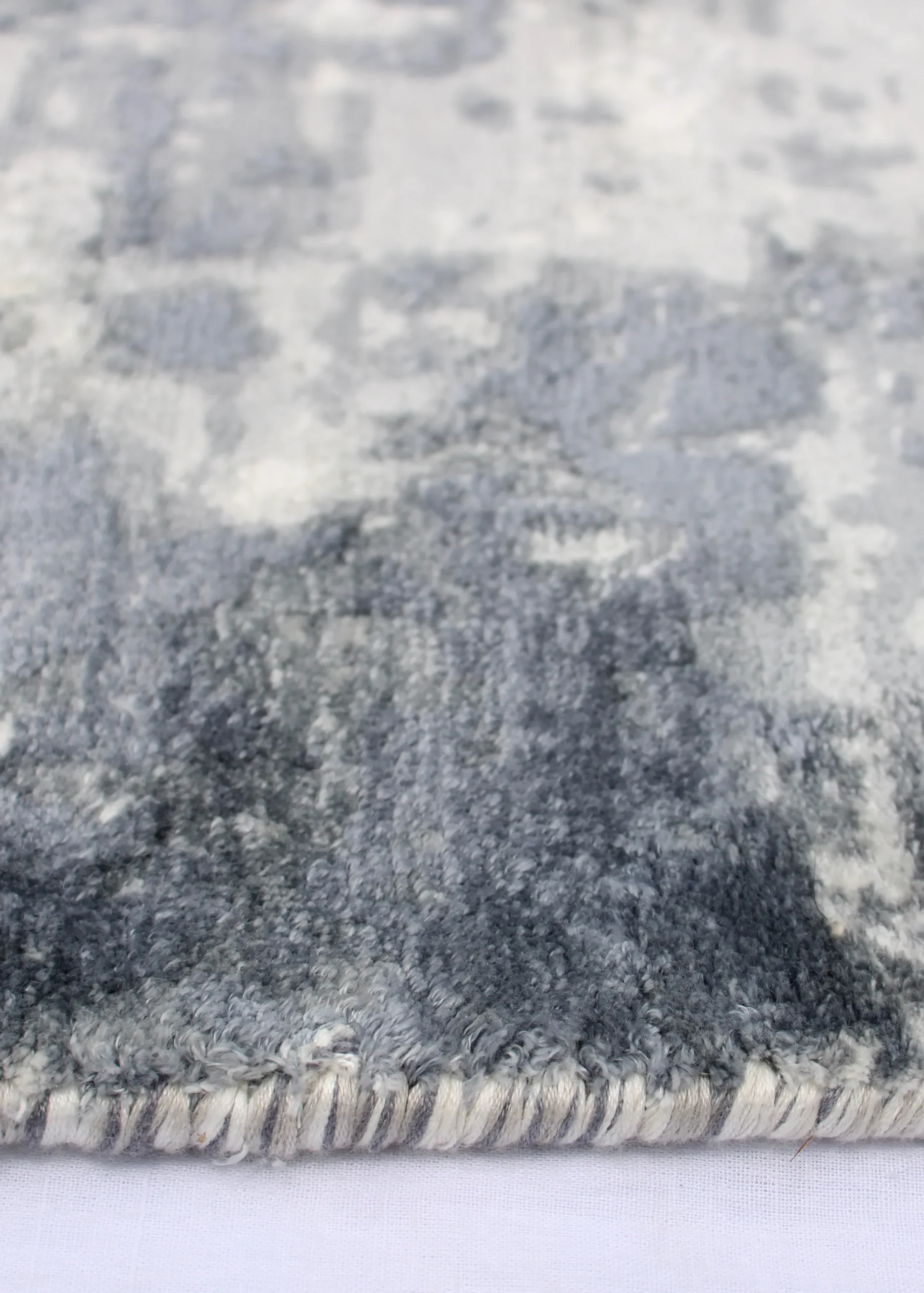 Tappeto Tencel moderno dal design astratto elegante, ideale per soggiorno e camera da letto. Realizzato con fibre Tencel di alta qualità, offre una superficie morbida, luminosa e resistente. Le tonalità grigio e bianco donano equilibrio e raffinatezza a qualsiasi ambiente contemporaneo.